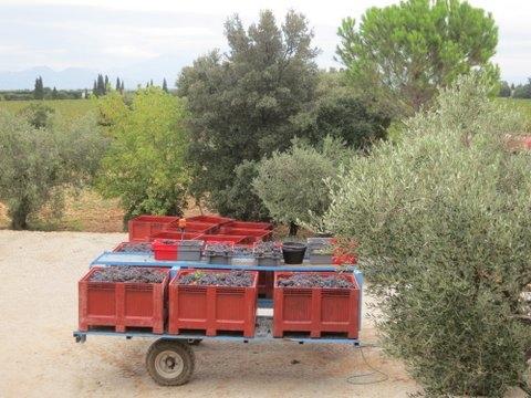 The GRENACHE is very much delayed this year," she continued, "so we still have crop around the cellars here at 12° - they are usually later, but are some way behind. Some vineyards are 50% down on crop, and my father says that the coulure on the Grenache reminds him of 1984; he is saying we have a 1970s to 1980s style vintage on our hands. Our yields will be 20-24 hl/ha. The last big rain a couple of week ago was 30 mm (1.2 in), which fell as the very first signs of hydric stress were starting in places. It is now cooler than usual, with mornings at 12°C, rising to 24-25°C, with fine weather and Mistral of 50 to 80 km (up to 50 mph) announced running towards 27-28 September.