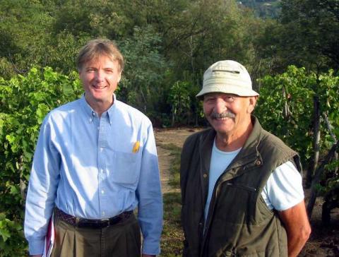 A HAPPY DAY WITH RAYMOND TROLLAT IN HIS VINEYARD ON AUBERT, PART OF SAINTE-ÉPINE. MY NEW TOOTHBRUSH WAS YELLOW BECAUSE I HAD BOUGHT IT THAT MORNING AT SAINT-PÉRAY. IT WOULD HAVE BEEN RED HAD I BOUGHT IT IN CORNAS